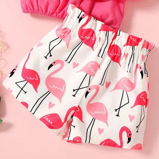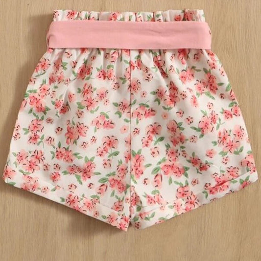 Crop Pink Floral Stylish Butterfly Belted Shorts For Baby Girls.