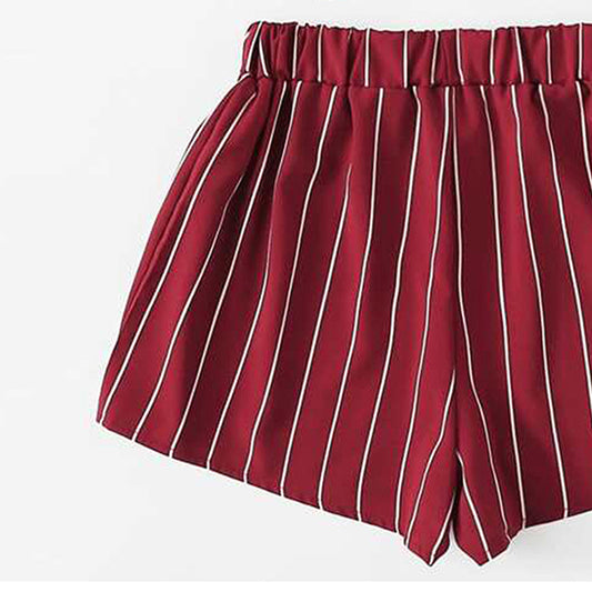 Venutaloza Toddler Girls Maroon Lining Print Waist Shorts.