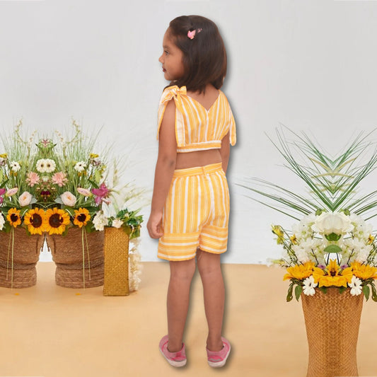 Crop Stylish Yellow Linings Top Sleeveless And Shorts For Baby Girls.