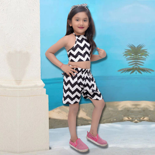 Stylish Designer Black & White Top & Shorts For Baby Girl.