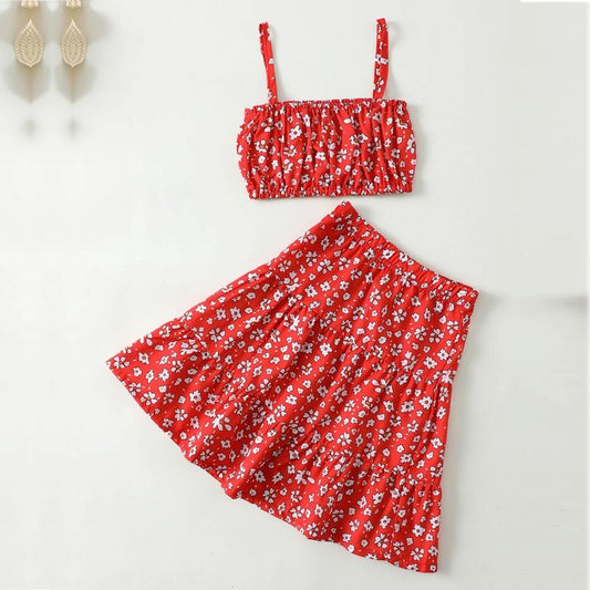 Kids Ditsy Floral Crop Cami Top & Frilled Skirt Set For Baby Girls