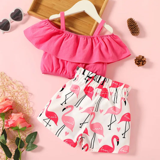 Girls Ruffle Off Shoulder Top & Shorts Set For Baby Girls.
