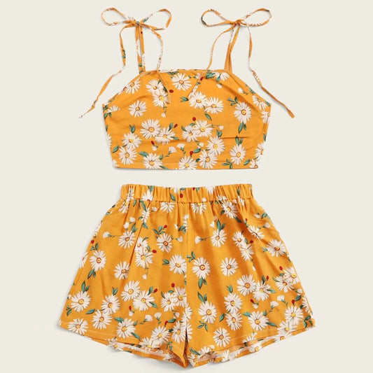 Crop Cami Top & Ditsy Lining Layered Shorts Set For Baby Girls.