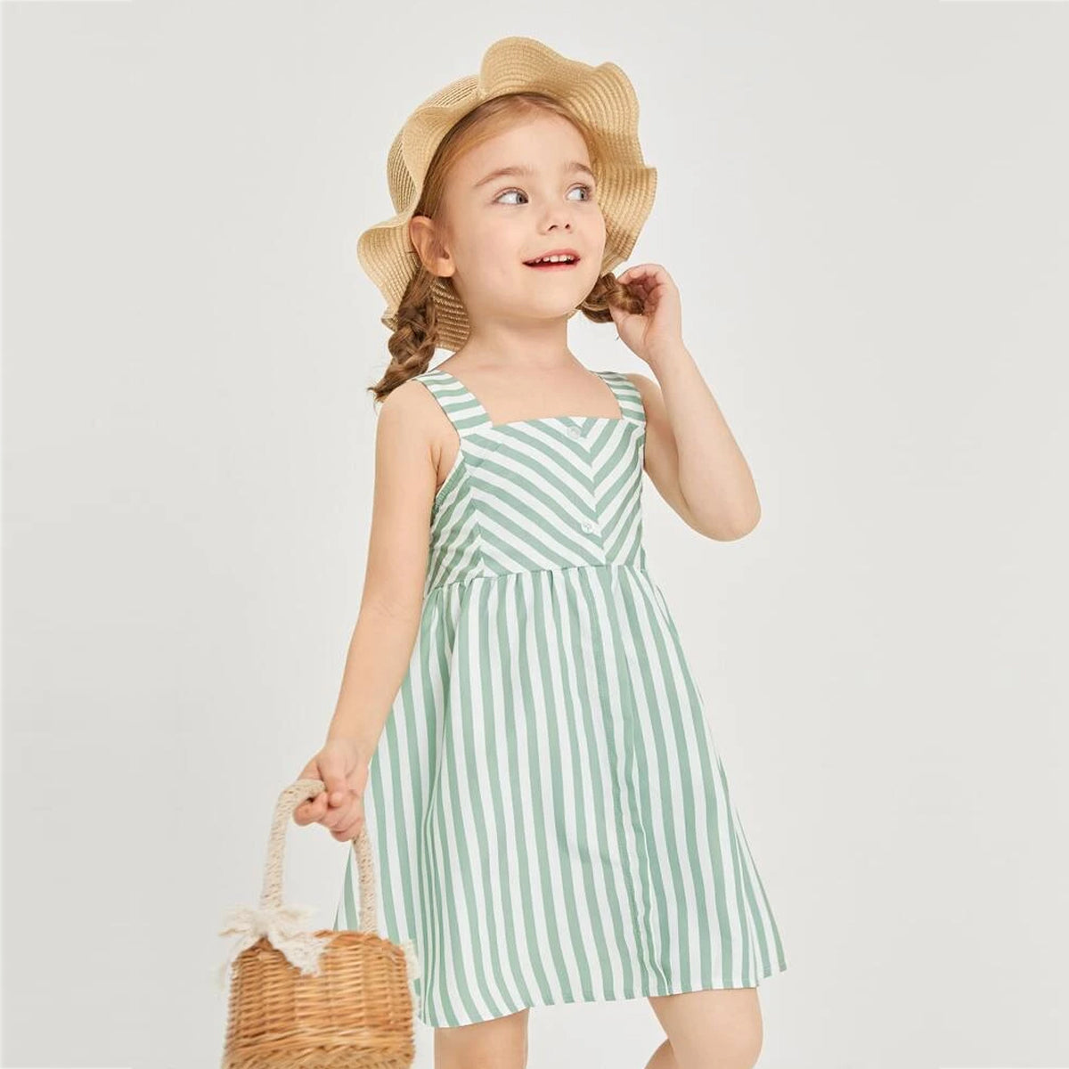 BabyGirl's Cotton Green Striped Cami Frocks & Dresses for Kids.