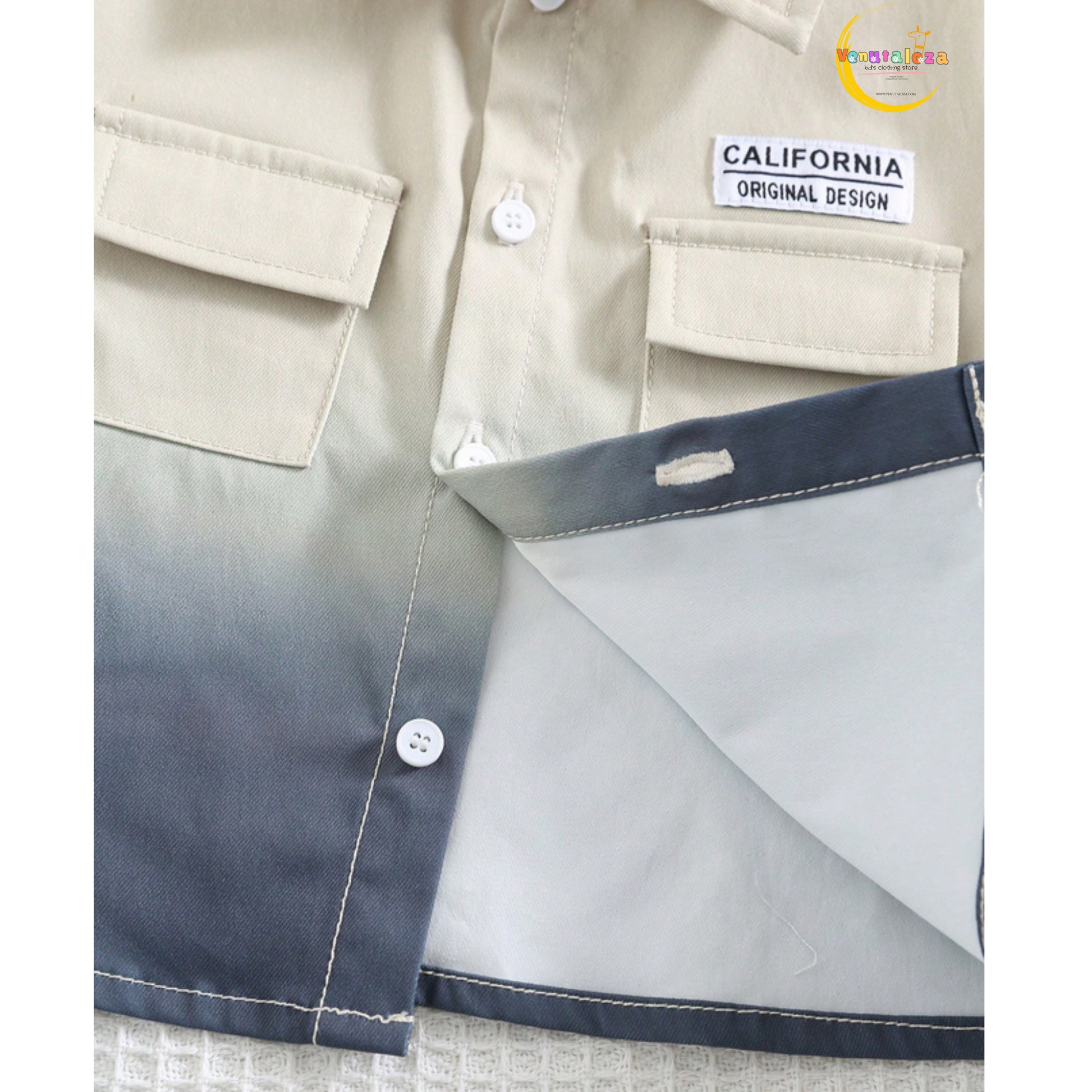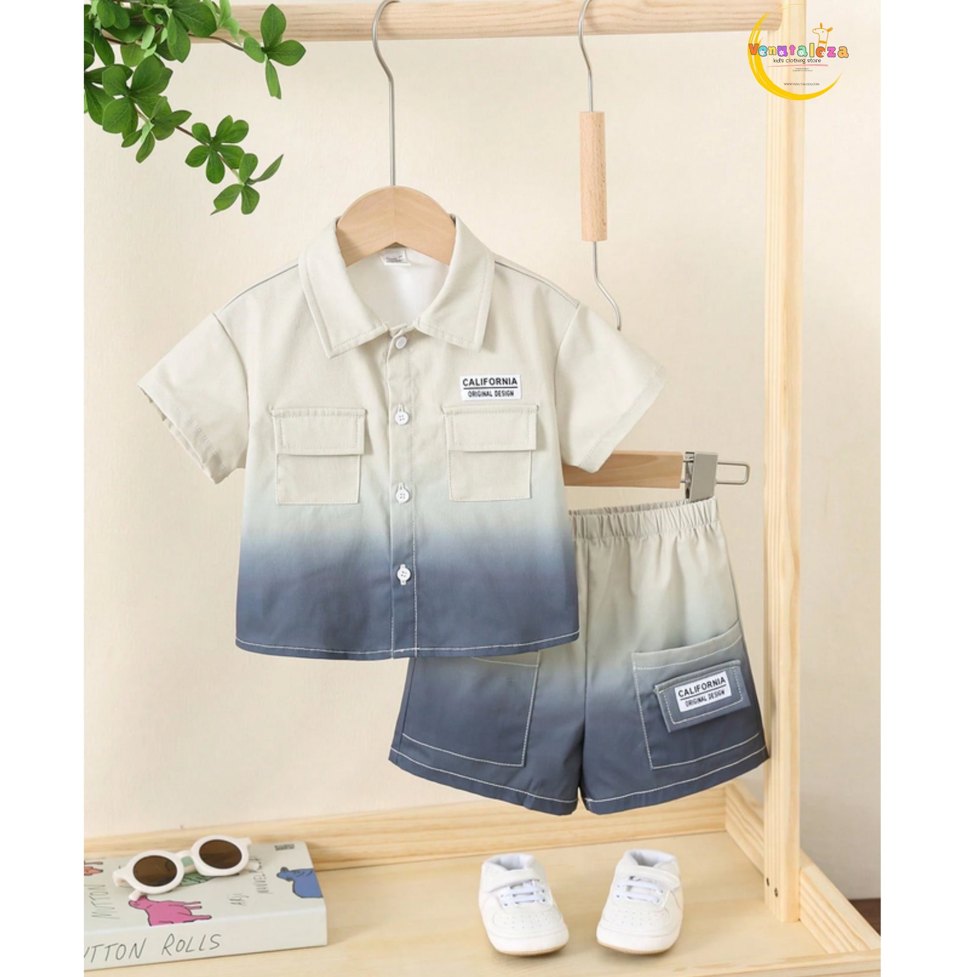 Baby Ombre Dyed Short Sleeve Shirt With Shorts Set For Boys.