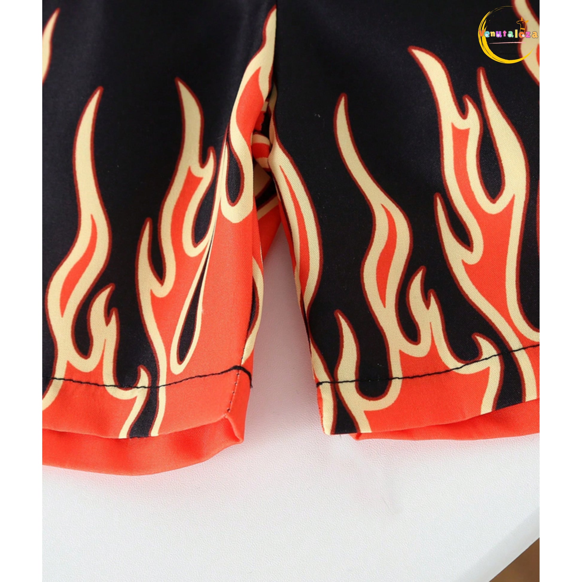 Baby Flame Fire Button Fly Shirt And Shorts Set For Boys.