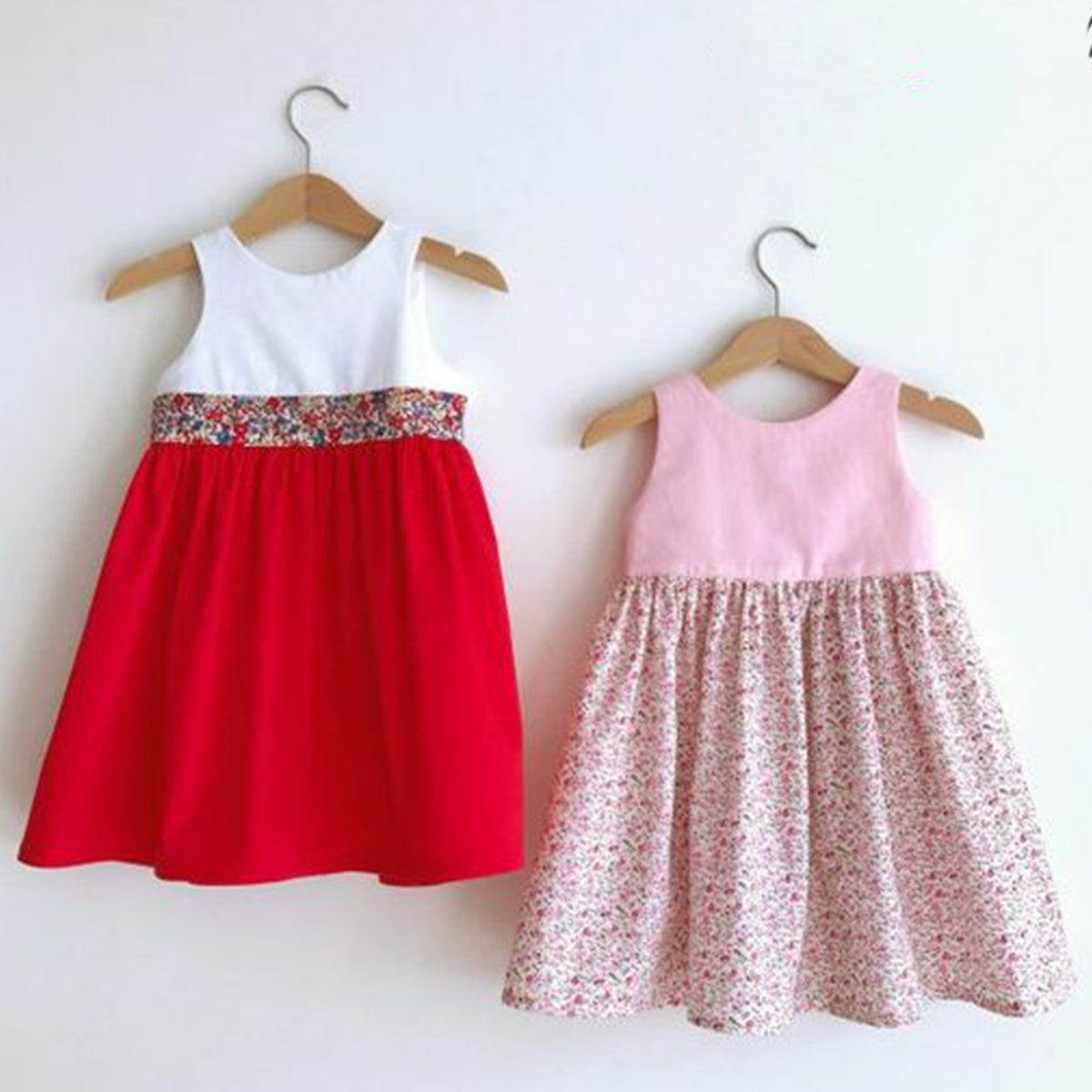 Toddler Floral With White Red Belted Sleeveless Dress (Combo Pack Of 2) For Girls. (For 6 Month to 10 Year)