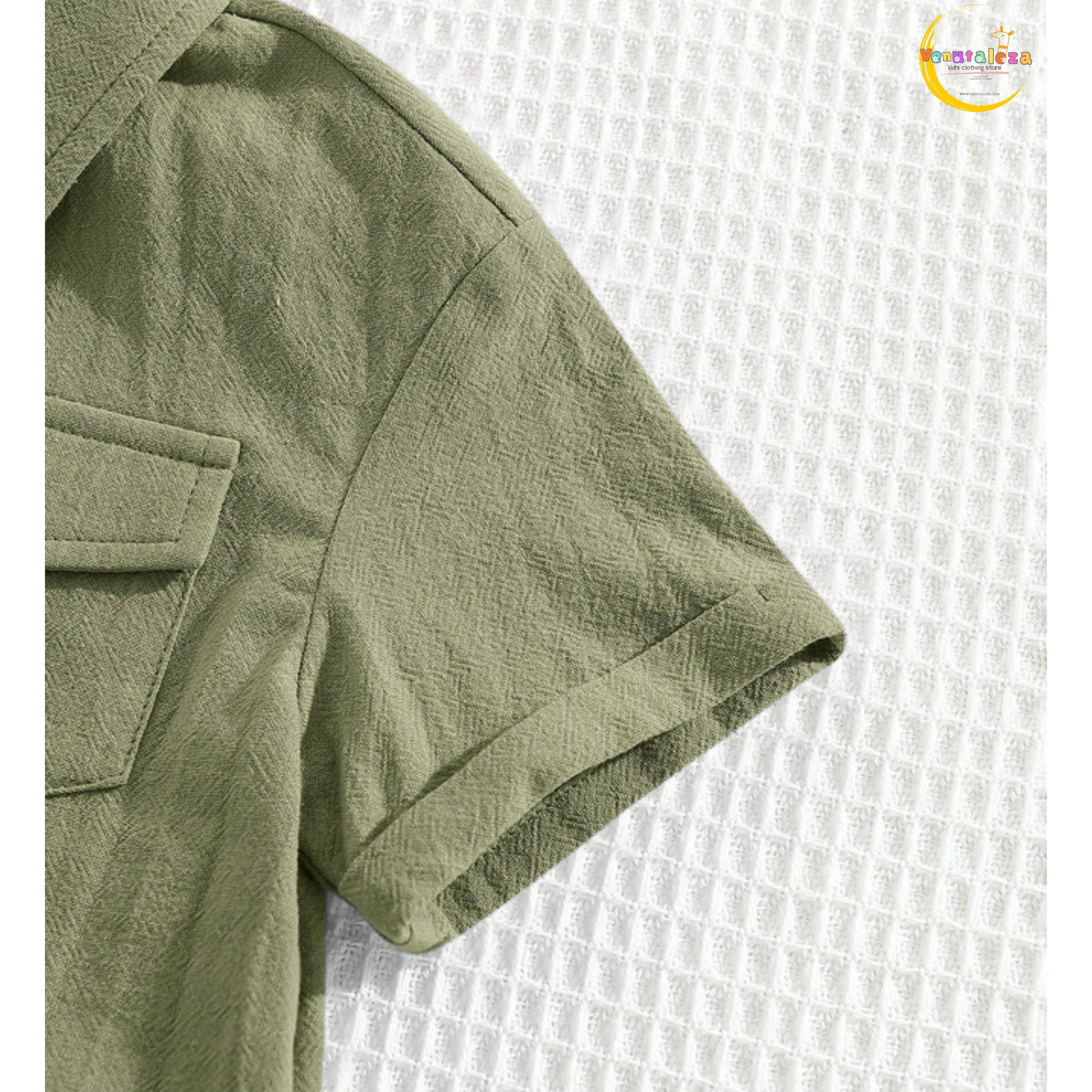 2pcs/Set Kids/Tween Boys' Casual Resort Style Polo Collar Pullover Short Sleeve Top & Loose Woven Shorts Outfit. (For 6 Month to 6 Year)