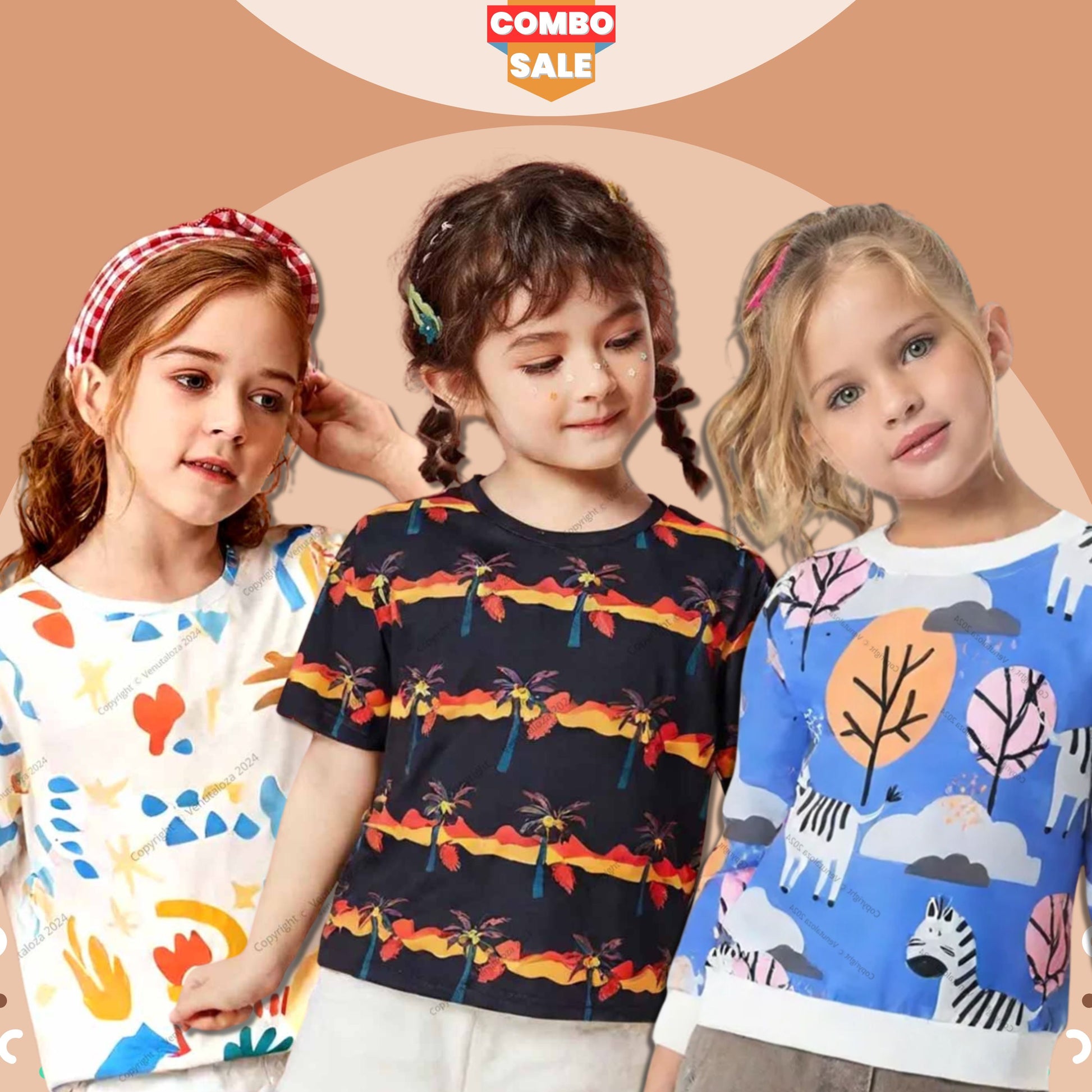 Venutaloza Beautiful Patterns (Combo Pack of 3) T-shirt For Baby Girls. (For 6 Month to 6 Year)