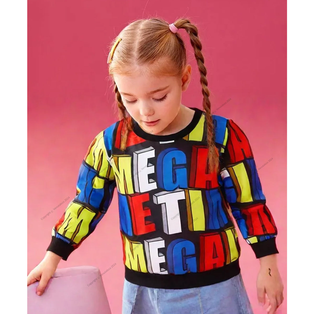 Venutaloza Letters Stripe Full Sleeve Round Nick Tee T-Shirt For Baby Girl's.