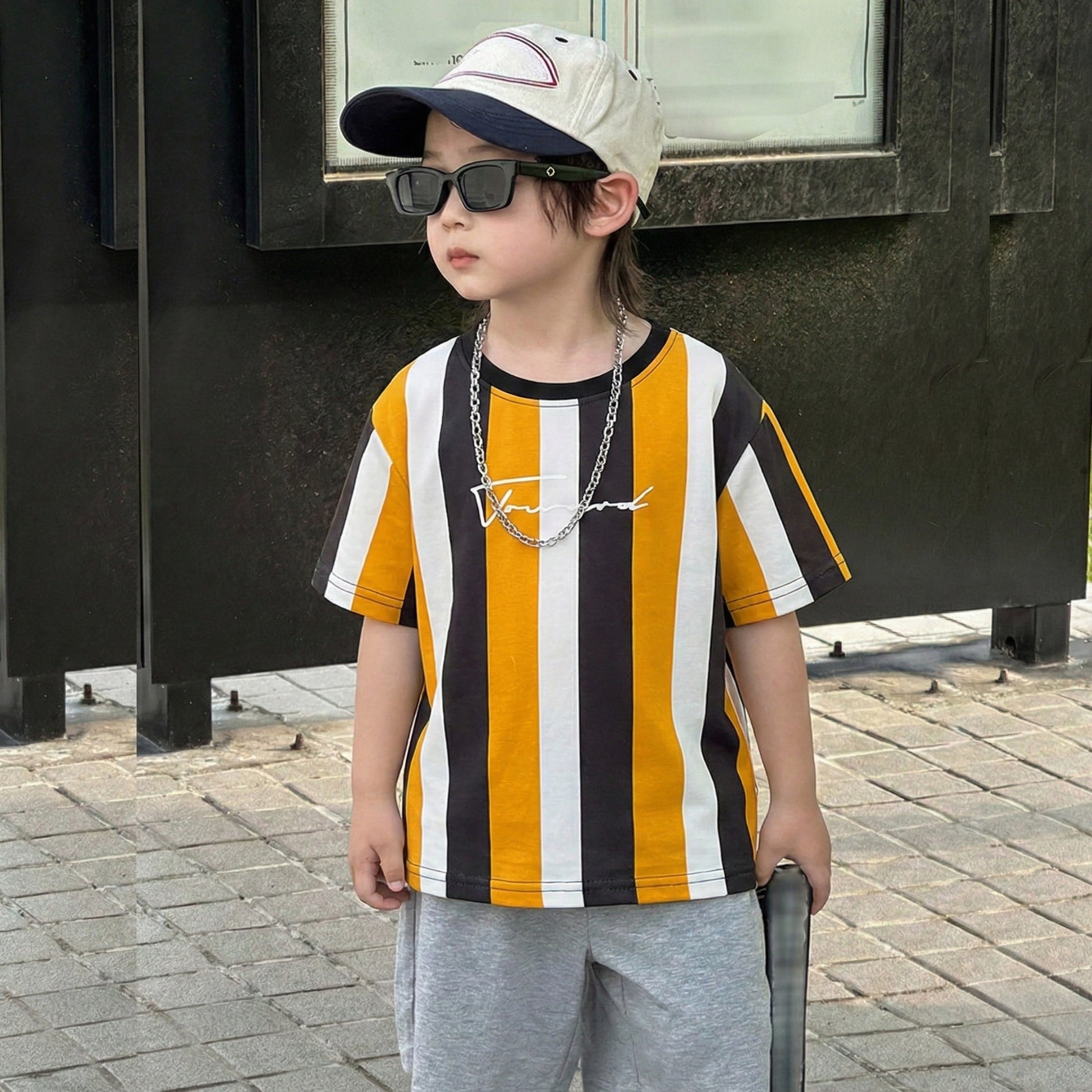 Venutaloza Stripe Color Block Round Neck T-Shirt For Boy's & Girl's.